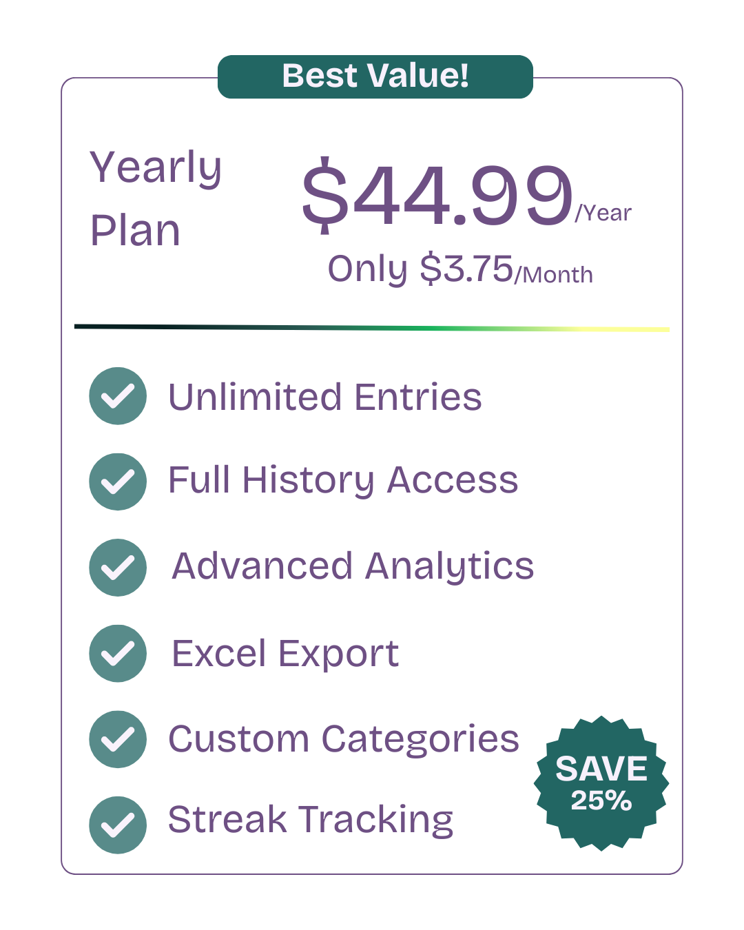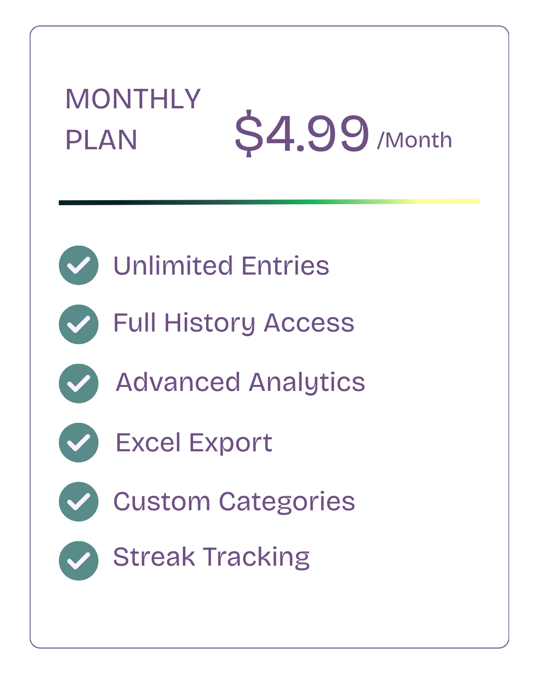 If you love it (you will), you can upgrade anytime for unlimited tracking and advanced insights.