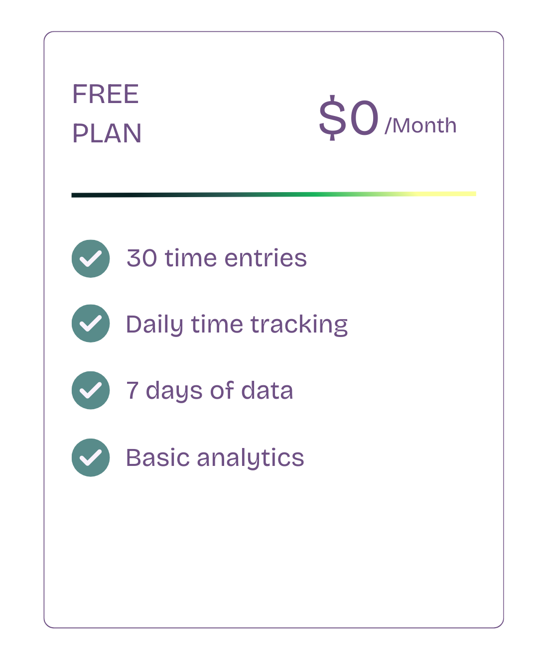 The Free plan gives you basic tracking and analytics with limited entries — perfect for trying it out and seeing if it fits your workflow.